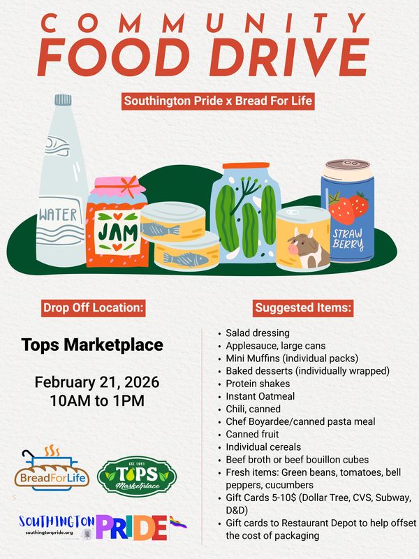 We will be outside Tops from 10-1. Pop into Tops and grab anything from list below to help BFL combat food insecurity in Southington.